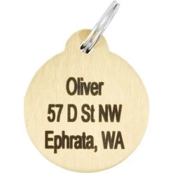 - Customizable, round ID tag made of classic, durable brass.