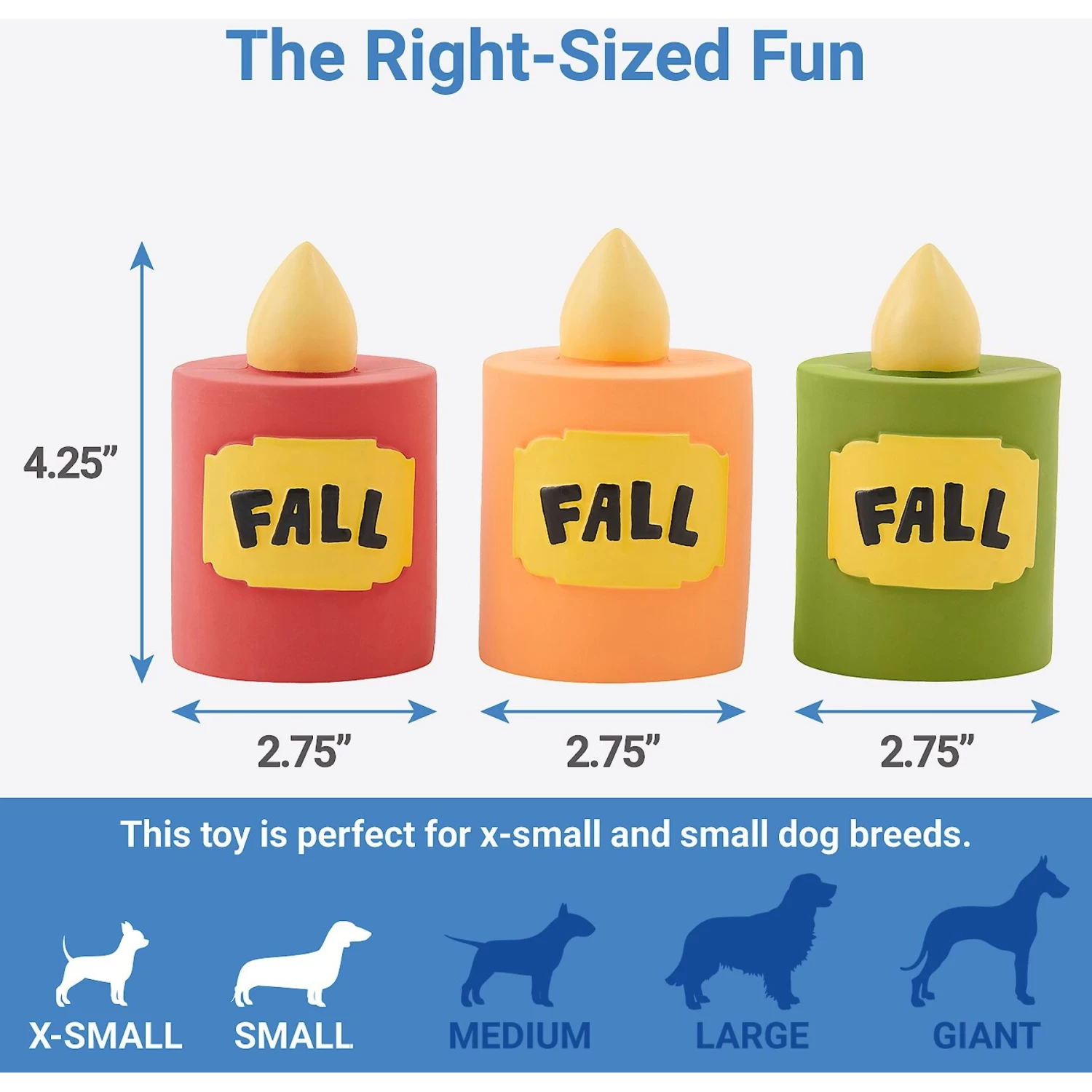 - Comes in a festive three-pack of fall-themed, squeaky latex candle toys.