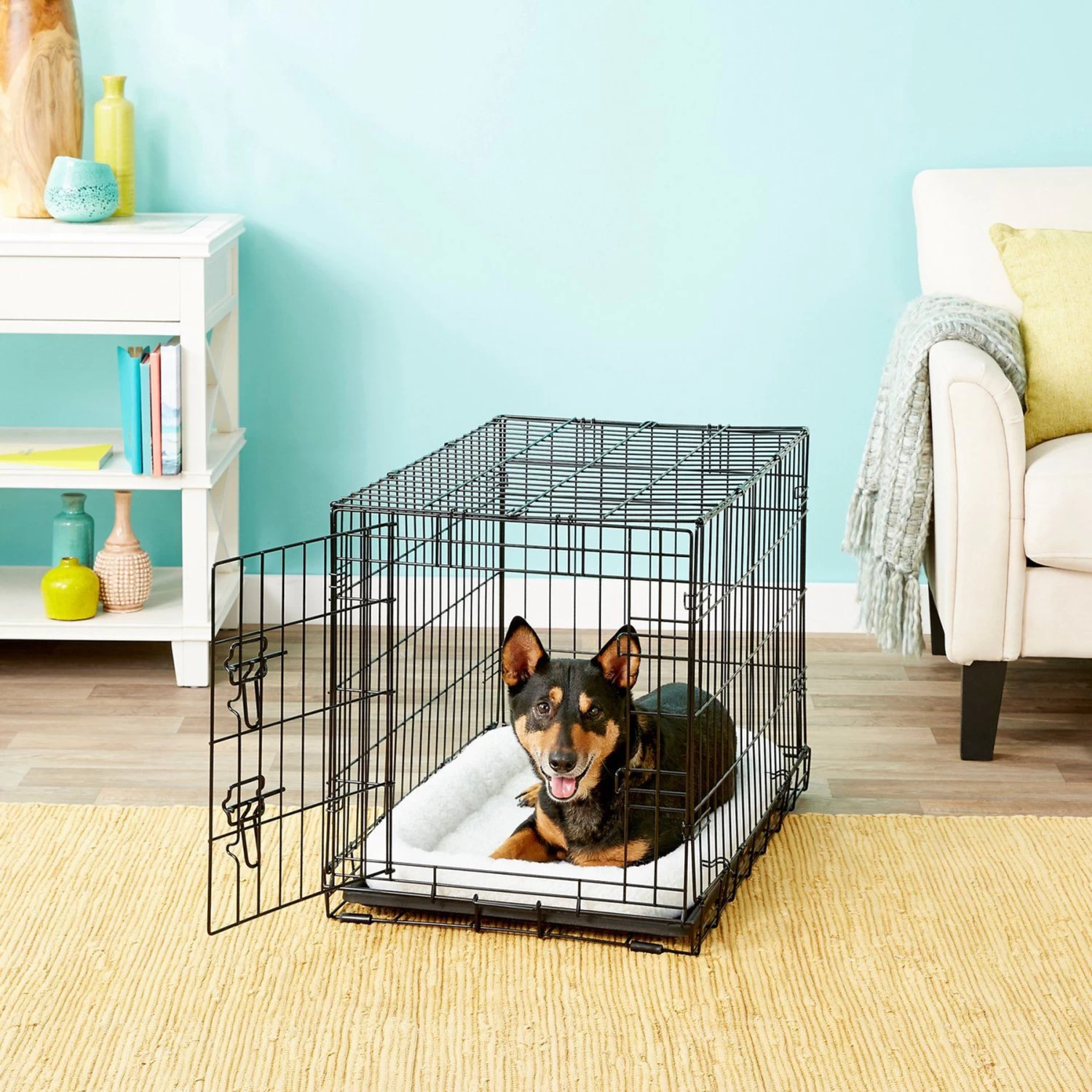 Frisco Fold & Carry Single Door Collapsible Wire Dog Crate + 4 Items