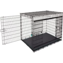 - Double sliding doors take up less space and allow your pet to easily enter their crate.