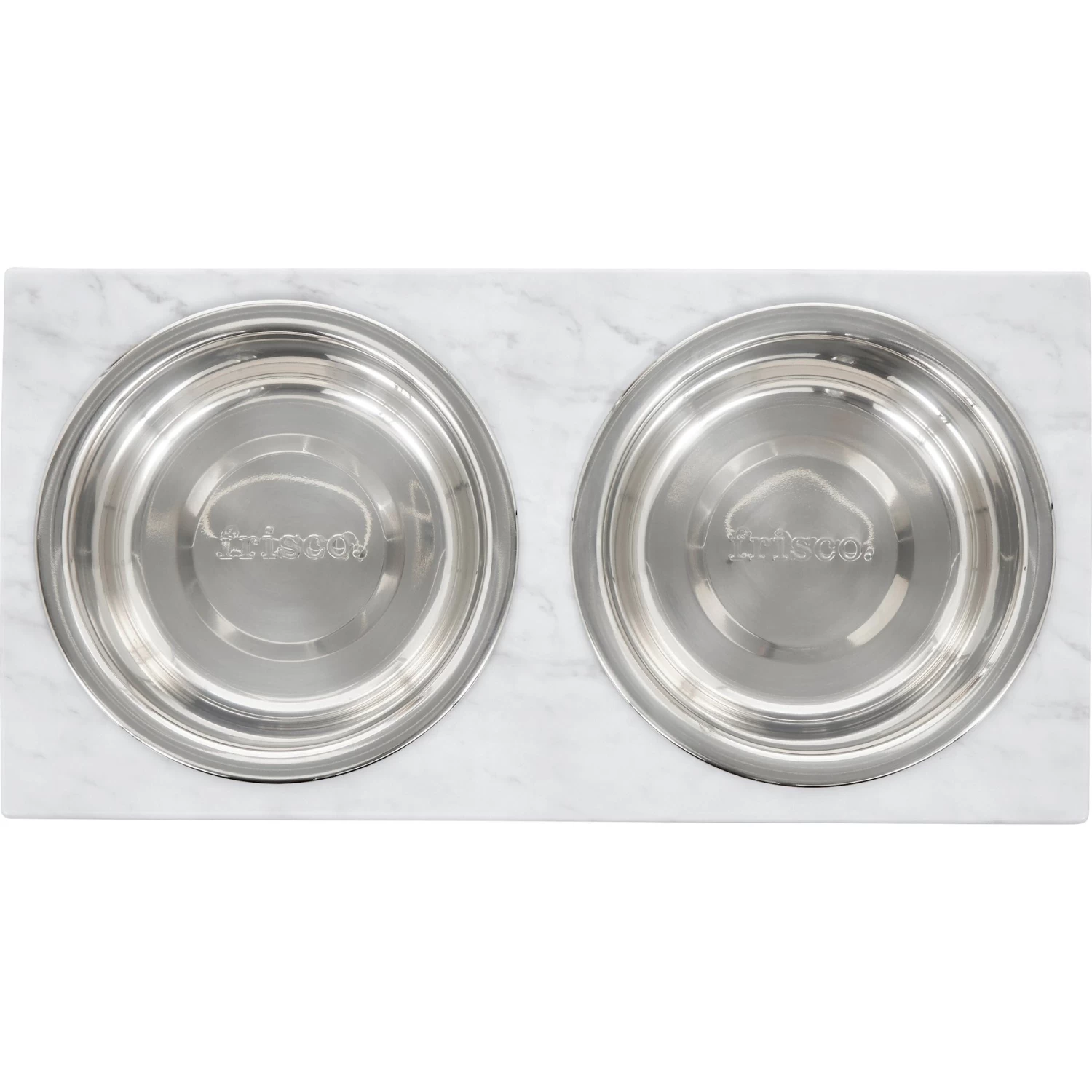 Frisco Marble Print Stainless Steel Double Elevated Dog Bowl