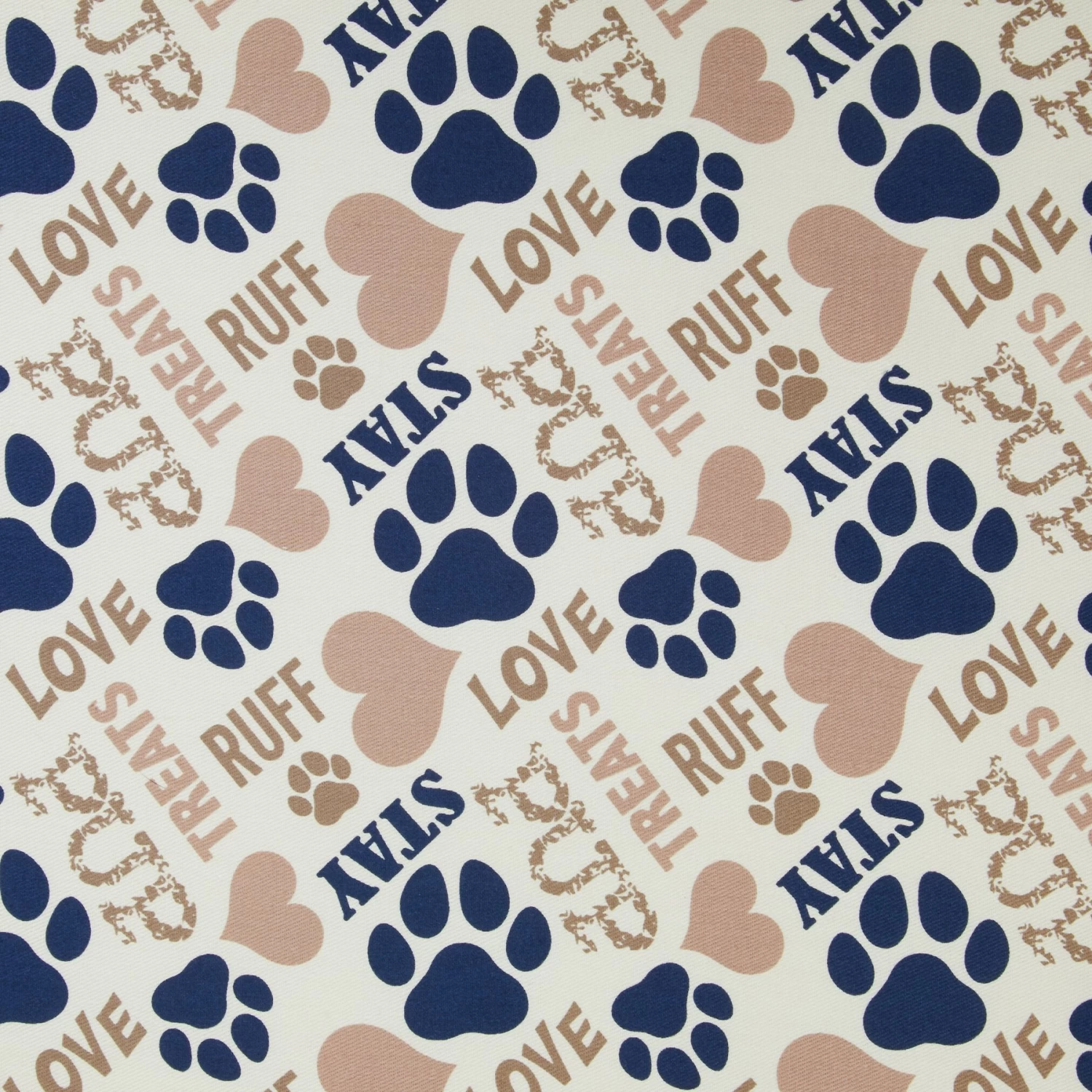 - Reversible crate mat featuring a tan and blue paw print design on one side and neutral design on the other.