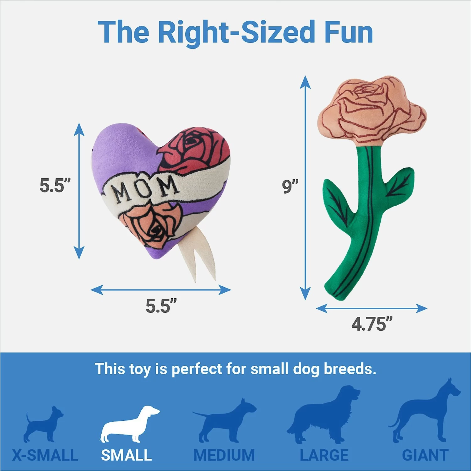 Frisco Mother’s Day Rose & Heart Plush Squeaky Dog Toy, 2 Count