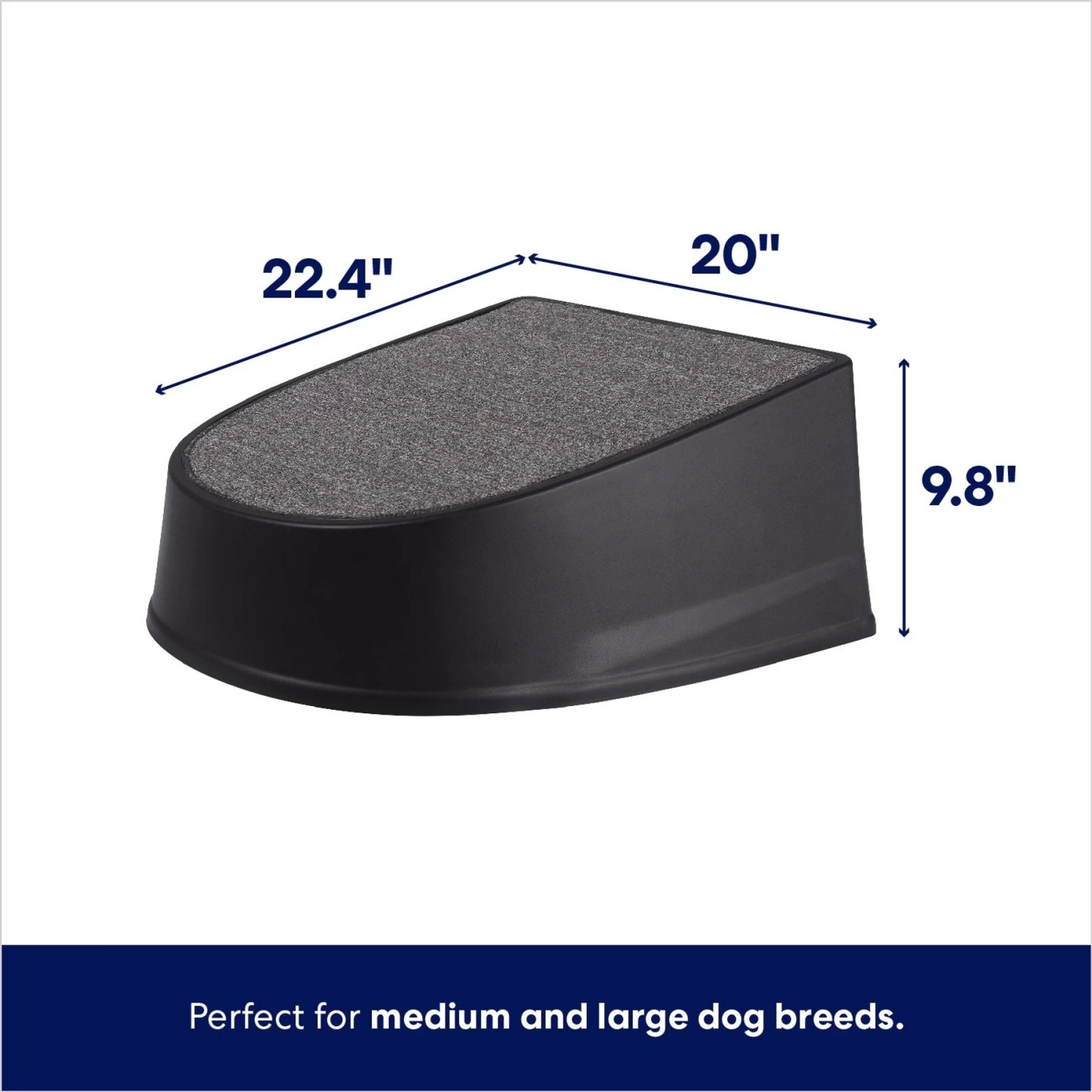 - The large platform offers plenty of stability and surface area for your pet to find their footing as they climb up to higher ground.