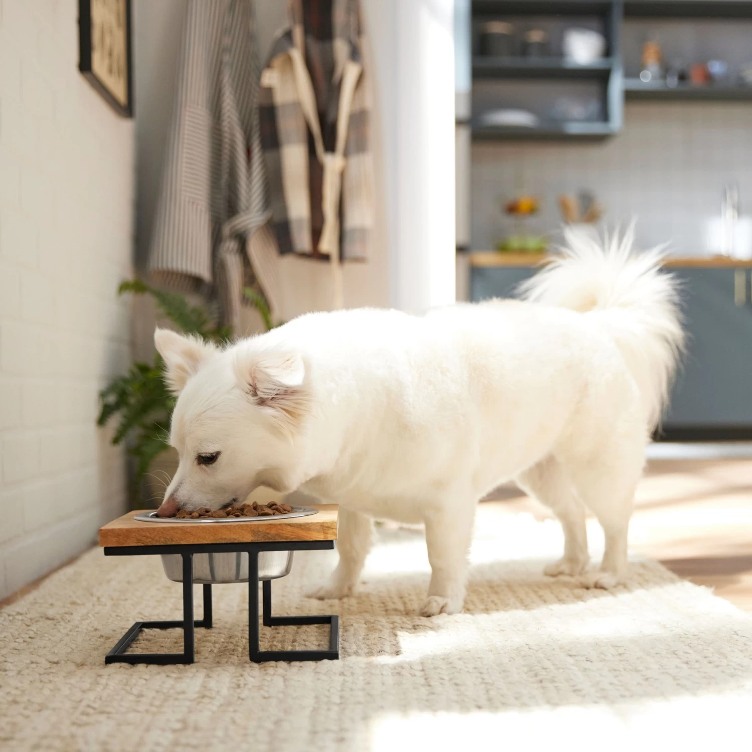 - Frisco Premium Modern Wood Elevated Single bowl diner gives your pet a sleek and effective option for when it’s time to chow down on their favorite meals.