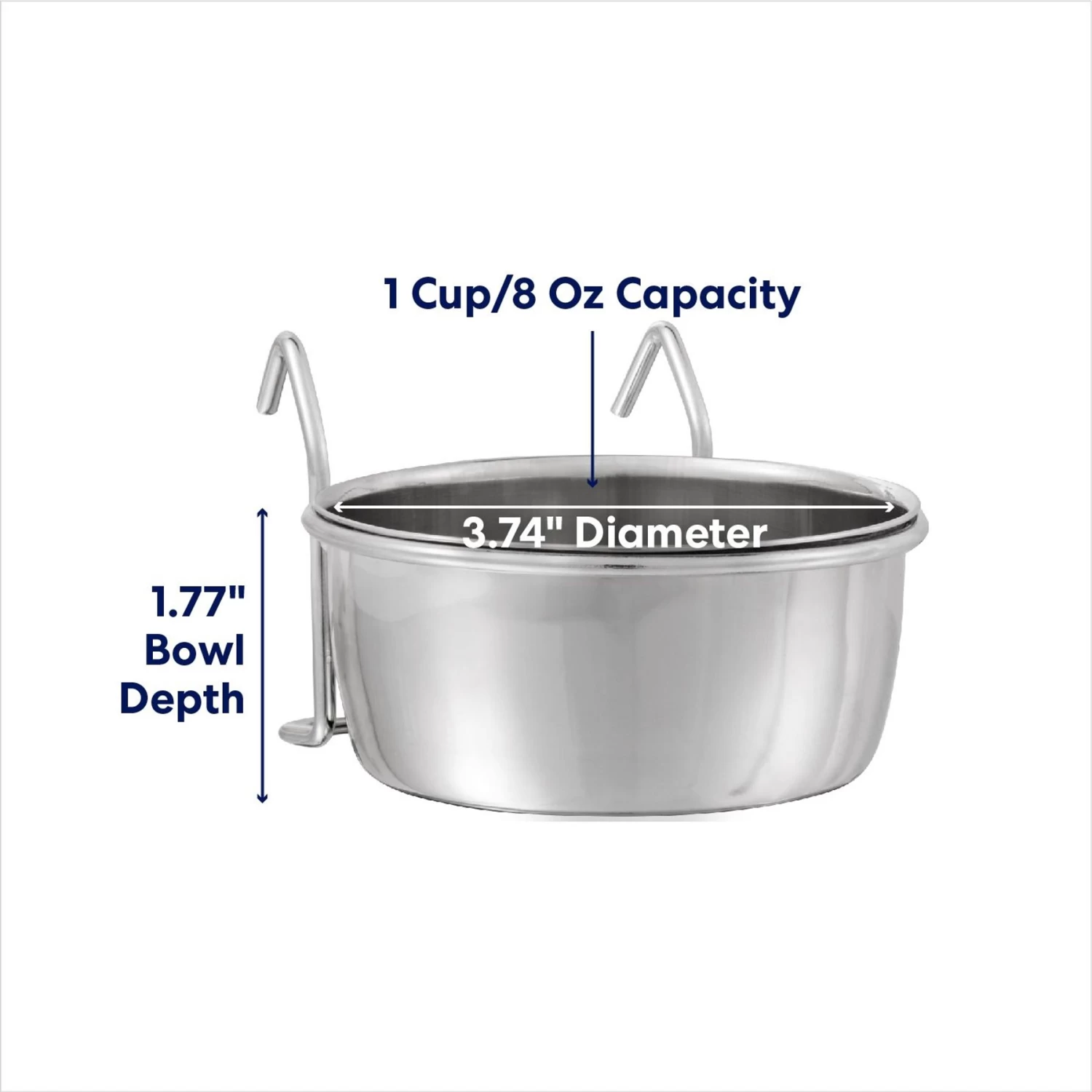 - Durable stainless steel pet bowl has built-in hooks so you can easily hang it on a crate or kennel.