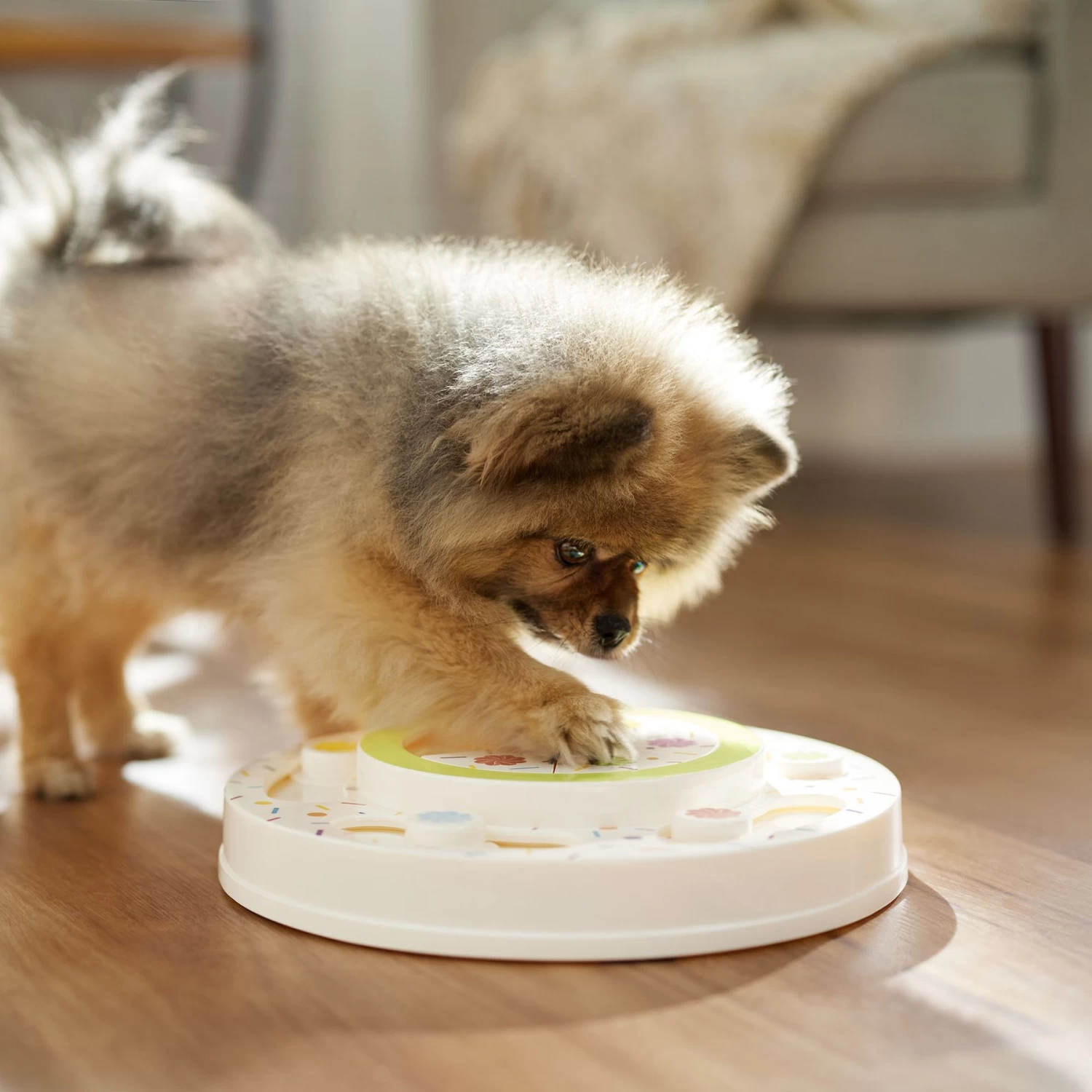 - From Frisco by Chewy. This problem-solving game features sliding pieces and nooks where you can hide small treats or kibble to provide an interactive puzzle for you and your pup to solve together.