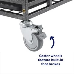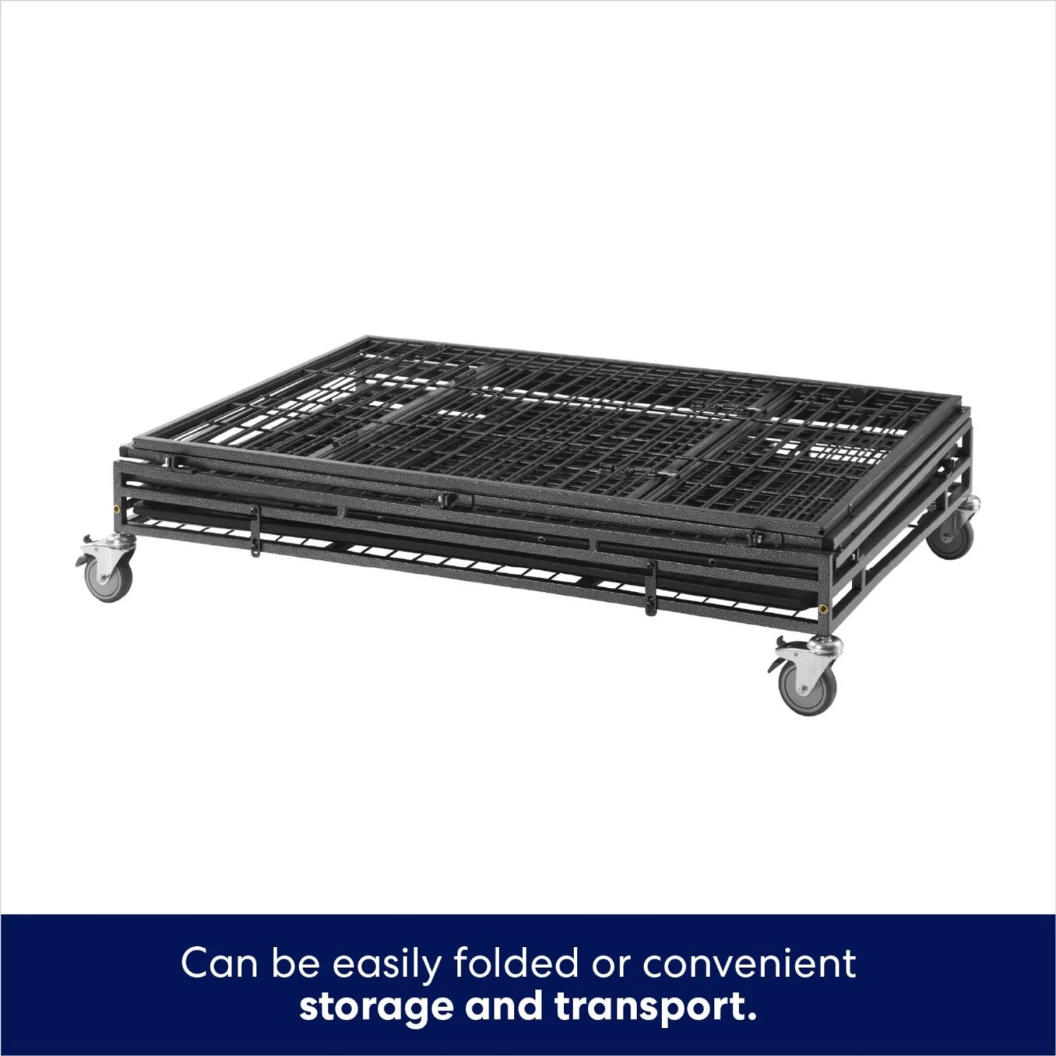 - Caster wheels with built-in foot brakes make it easy to move and lock it in place. Do not move the crate with pets inside.