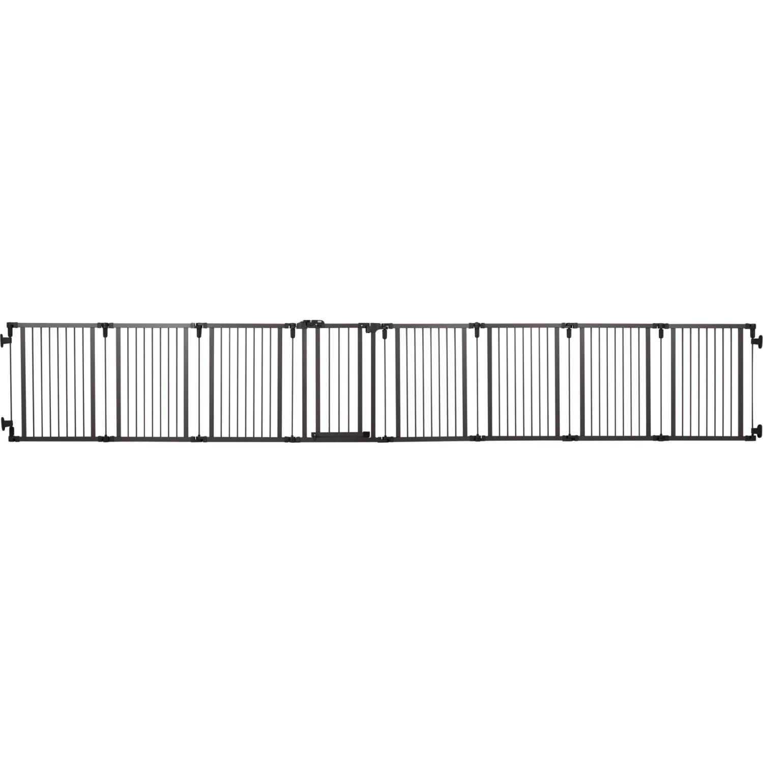 - Includes large anchors to secure the gate between walls and separate open spaces, creating a space for your pet to roam freely. Features a simple push-button release for quick and easy setup.